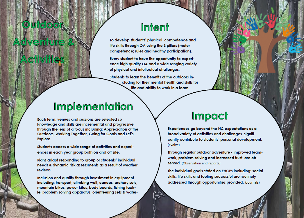 Through a personalised approach to teaching and learning that offers challenge, we use adventure activities and on / off site experiences to develop positive outcomes in personal, social and health education.
